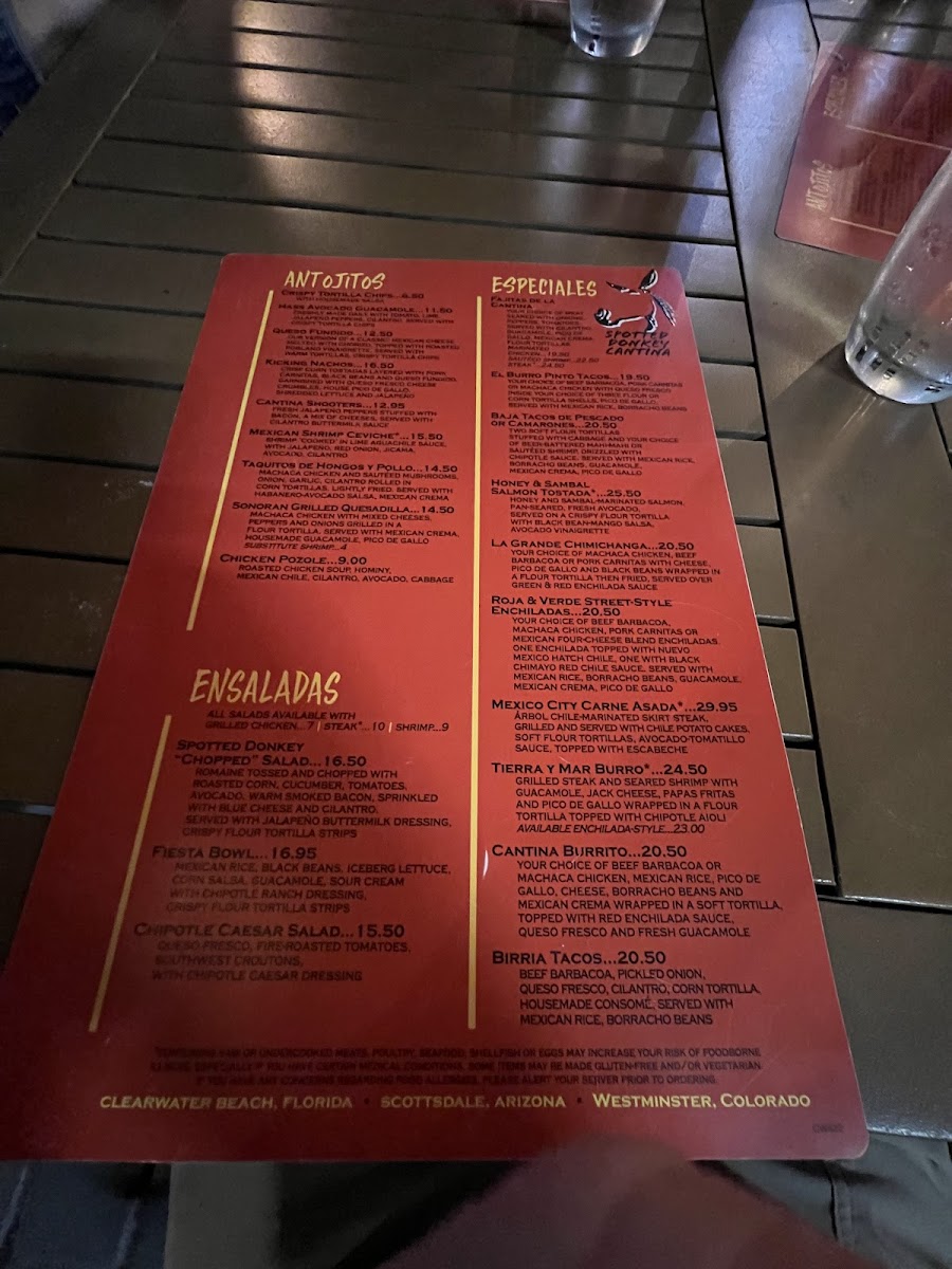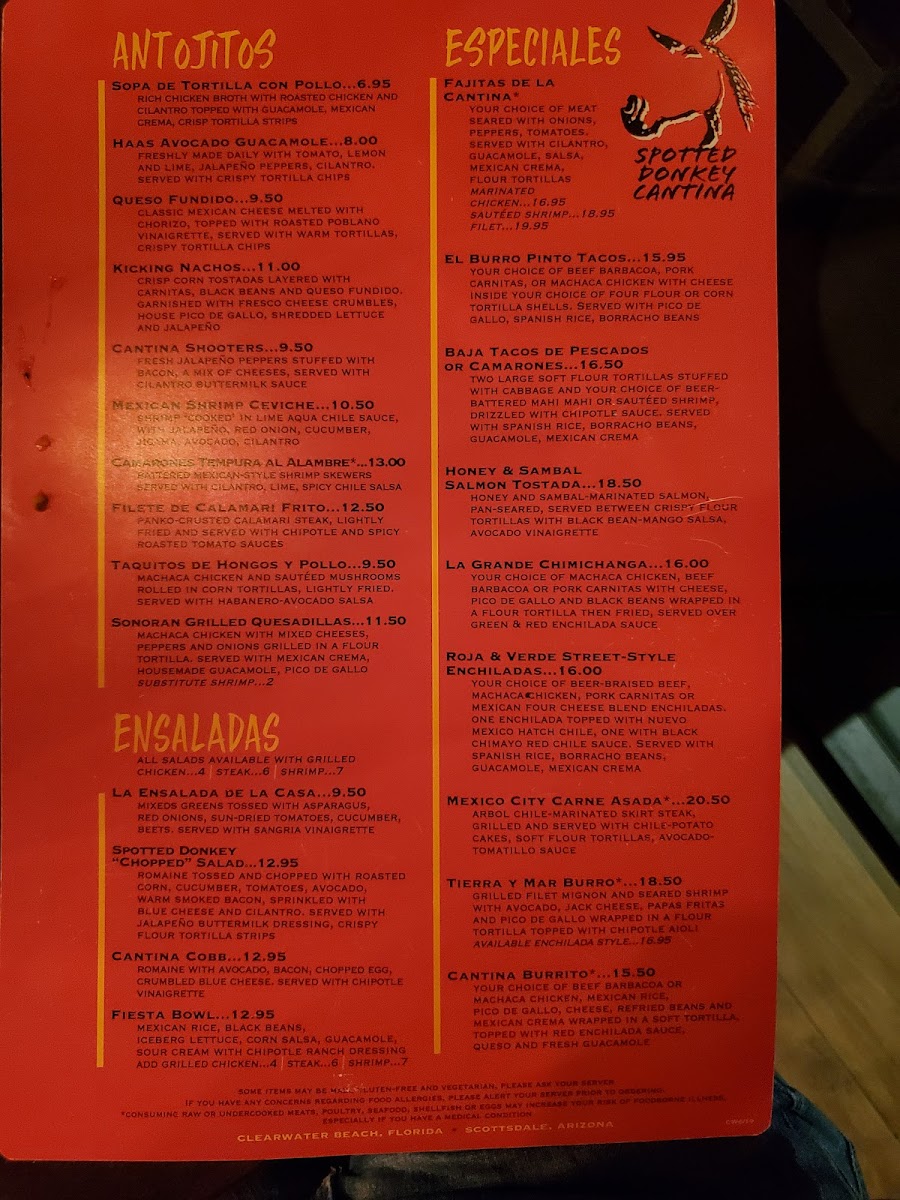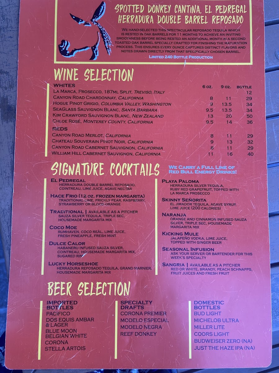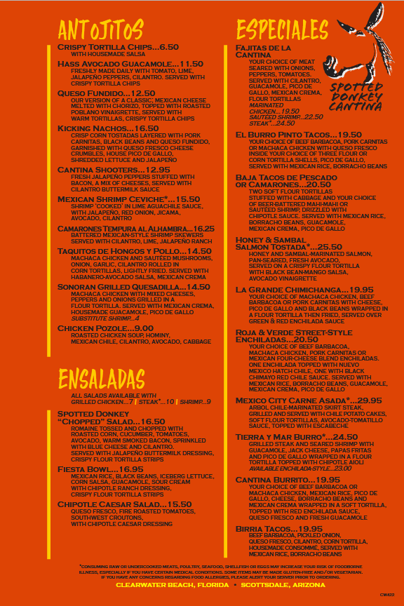 The Spotted Donkey Cantina Menu
