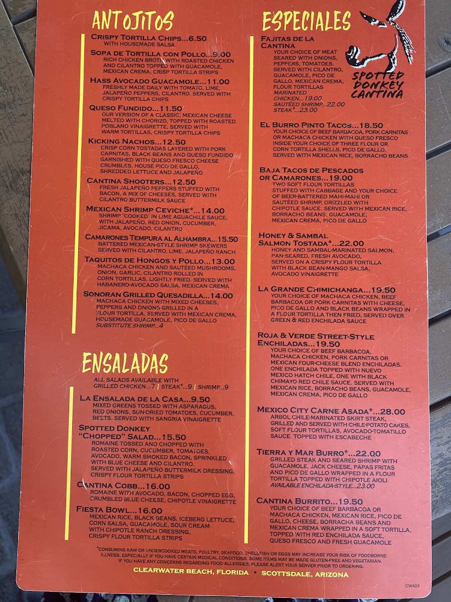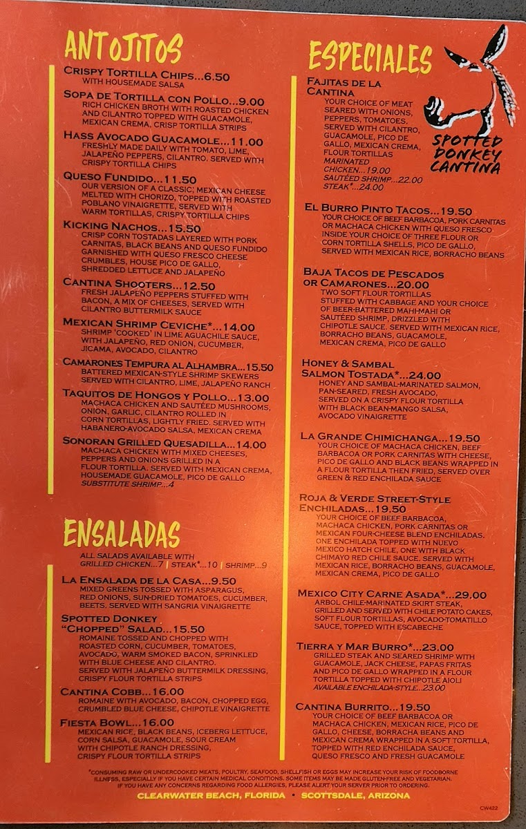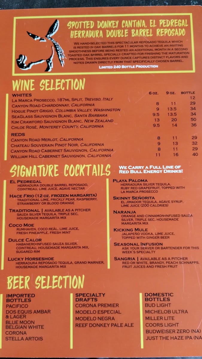 The Spotted Donkey Cantina Menu